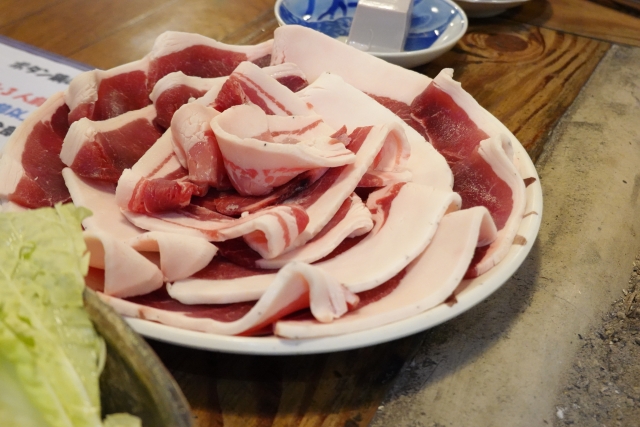 調理してくとぼたんの花っぽく見える、またはお皿に盛りつけた状態がぼたんの花っぽい、のどちらかが由来ということで、つまり「イノシシ肉が牡丹(ぼたん)の花のように見える」という感じみたいです。